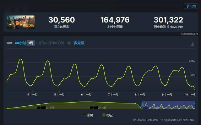 目前《逃离鸭科夫》Steam好评率为96%好评如潮,玩家群体一致给出好评。根据SteamDB数据显示,该作Steam在线人数已突破30万大关。