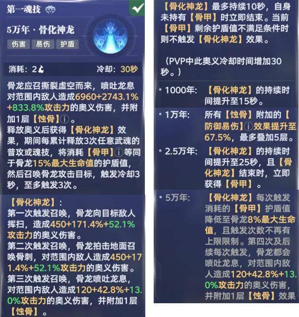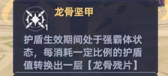 然后是古榕的3被动,这个被动的主要功能是改造“骨甲”提升为“龙骨坚甲”,此护盾刚刚已经提到过了,可以让护盾存续期间的我们享受到强霸体效果,PVP中的表现就有些强悍如斯了......此外这个护甲的持续时间是无限的,后续不断累积出的“龙骨残片”还能进一步提升获取的护盾量......所以这也是一个主要在PVP中可以充分发挥光亮的保命类技能。