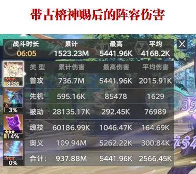 那么当古榕带了其神赐1奥义魂环后,这个阵容的伤害便会立刻又有15%左右的提升,此时便可以在无韧性条的敌人状态下稳定超过同星级的阿银了......所以古榕的这个增伤表现是不是真的还算比较惊喜呢?