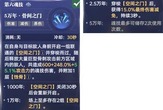 接着古榕的6魂技也是一个和“空间之门”相关的技能,这种快速空间移动类的技能对于大家的操作要求非常高,要不然实际意义也不大,所以需要我们在PVP中适时地进行释放。