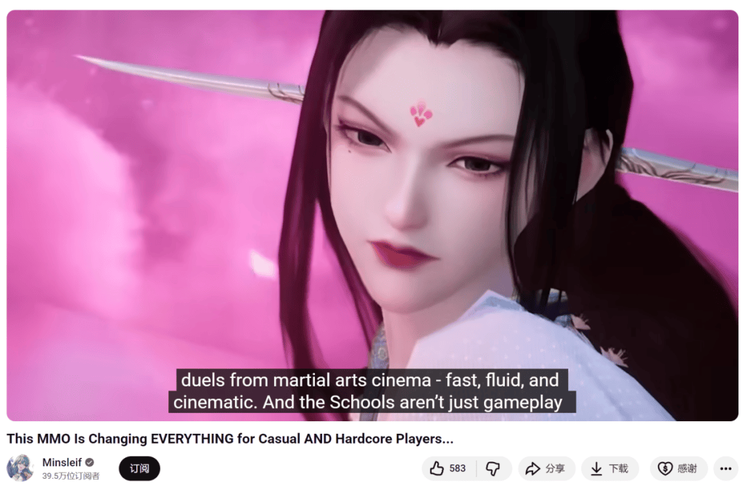 在油管上拥有39万粉的主播Minsleif就对逆水寒手游成呈现的武侠战斗大加赞赏,表示其战斗风格围绕中国的传统武术流派所构建,充分展示了其武侠的精髓,其中的每个门派都各具特色,风格鲜明。
