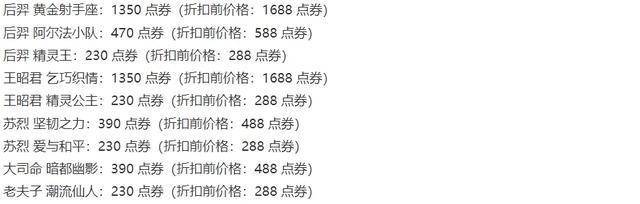 英雄这块,包括王昭君+苏烈+大司命+老夫子,都会从588点券降价至488点券,而我的建议则是最好别用点券购买英雄。