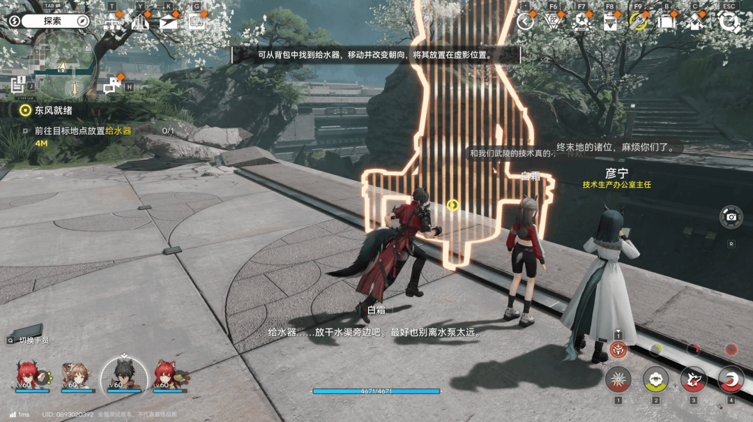 为了避免任务线沦为基建玩法的「新手教程」,团队使了很大力气去填充叙事内容。比如说当玩家在武陵城郊区部署协议核心后,没有选择紧接着讲解「如何着手开发和建造这片特殊区域」这个可能会中断叙事的教学,而是巧妙的让玩家先去了解一个小事件,再通过新解锁的给水器让水位上升,来解决农民耕地的水源问题,对玩法进行学习。