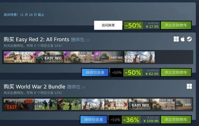 在11月18日之前,购买《浅红2》标准版游戏,享受半价,促销价17.95元: