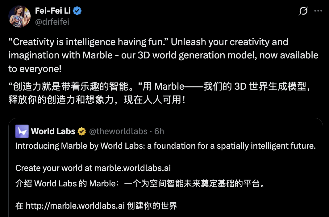就在今天,李飞飞发布了全新的世界模型,开启公测,人人可玩。