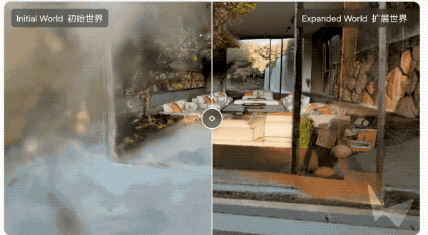 还内置了AI原生世界编辑工具。编辑可以很小很局部,比如移除一个物体,修饰一个区域。也可以很彻底:交换物体,改变视觉风格,或者重构世界的大片区域。