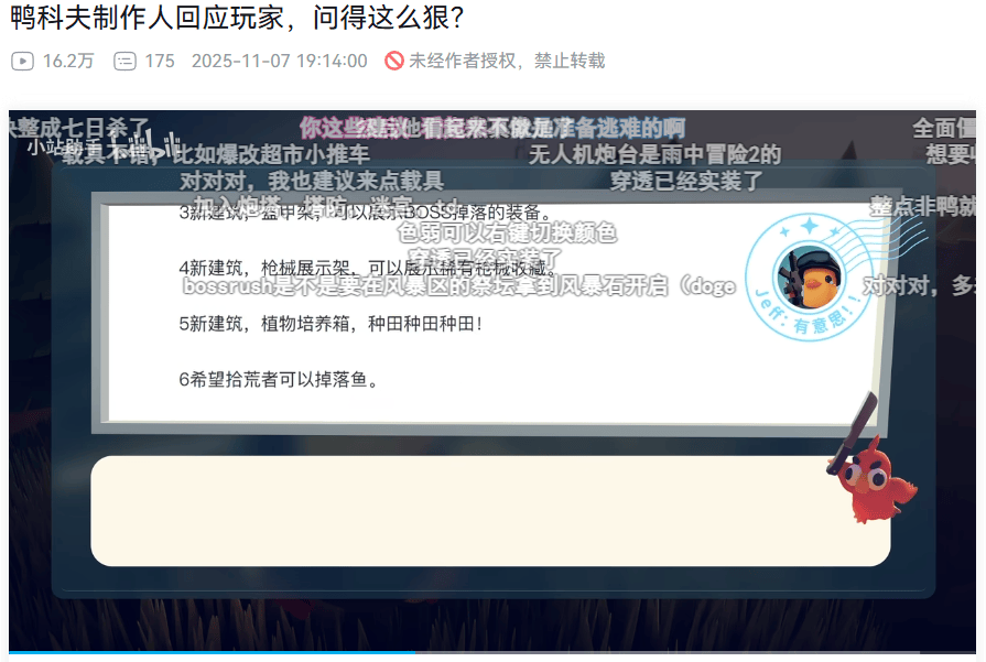 很显然,PVP和大DAU路线对于鸭科夫来说并不是最佳的选择,也与这款游戏强调轻松、乐趣、正反馈的调性不符。目前最适合鸭科夫的策略,依旧是「由玩家来选择自己想要什么体验」。