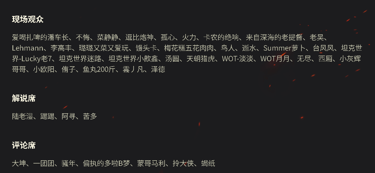 除了韦神和各大战队的队长外,我们《坦克世界》也会有大UP主参与签名会,也会同时参与到WCI赛事的解说与评论中。