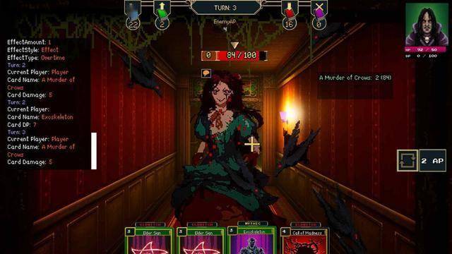 《疯狂面纱》做出了策略性与叙事性的双重深化,在战斗中理解角色,在理解中做出战斗选择。传统RPG往往在战斗与故事之间做取舍,而《疯狂面纱》的战斗系统拥有明确的叙事目标:战斗是玩家理解主角精神困境的一种方式,它用一张张代表着人格碎片的卡牌,构筑出主角与外星意识能够沟通的桥梁。