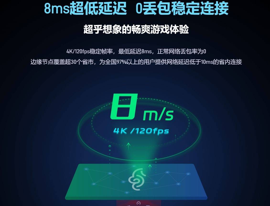 更值得称赞的是,海马云电脑独家支持8K超高清分辨率输出,配合超稳定的帧率控制,全程无掉帧、无画面撕裂,让战场细节(比如子弹击中墙面的碎屑、角色装备的纹理)都清晰可见。在网络传输层面,其表现同样亮眼:实现了低至8ms的延迟,在正常网络条件下丢包率可保持为0;同时还特别配备了独家测速数据功能,玩家无需借助第三方工具,就能实时查看当前延迟、网络稳定性等数据,精准把控游戏运行状态。