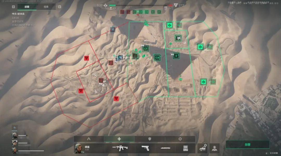 金字塔地形的特殊性,让它成为了能够决定战局走向的战略要地——作为沙漠平原地形中央的最高点,金字塔上的平台可为玩家提供极其广阔的视野,足以俯瞰全图的大部分地点。可以说,只要占领了金字塔平台,并在其上架设火力点,就能高效阻击从平原区域的敌方步兵,从而拿下中场区域的所有点位。