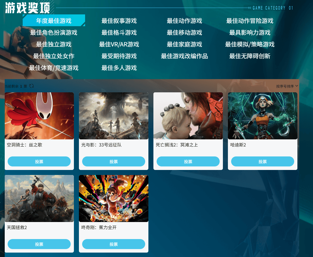 姬很纠结要把票投给谁,姬真的好想投给《33号远征队》,不过考虑到去年的情况……算了,虽然对比起《旷野之息》《马里奥奥德赛》来说有点差距,但还是直接《刚蕉》吧!《刚蕉》,爽!