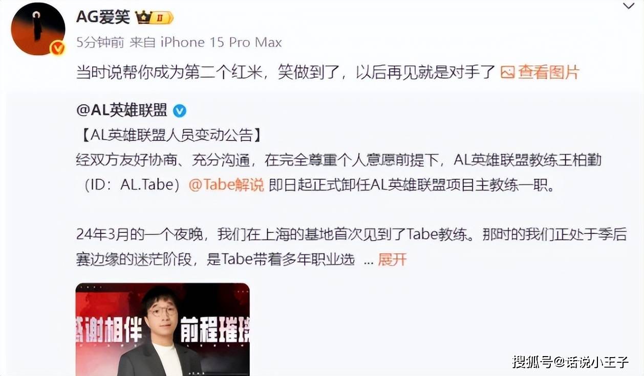 那么大家觉得AL没了Tabe教练,明年冲击s16还有希望吗?欢迎在评论区讨论留言。