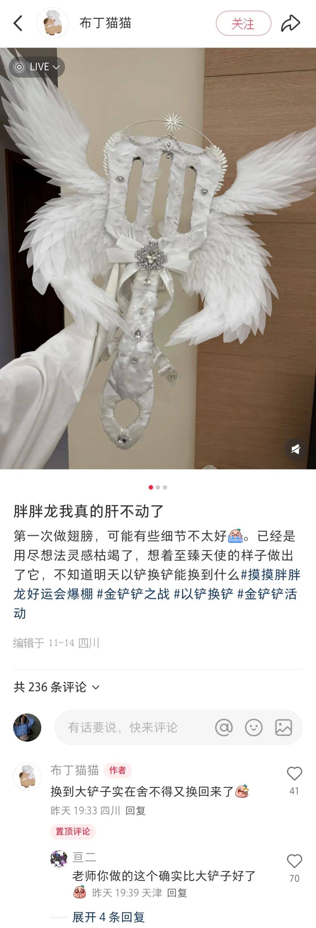 甚至还有人做着做着,发现自己做得太好了,觉得大金铲不如自己这个好,于是又跟胖胖龙要回来了……