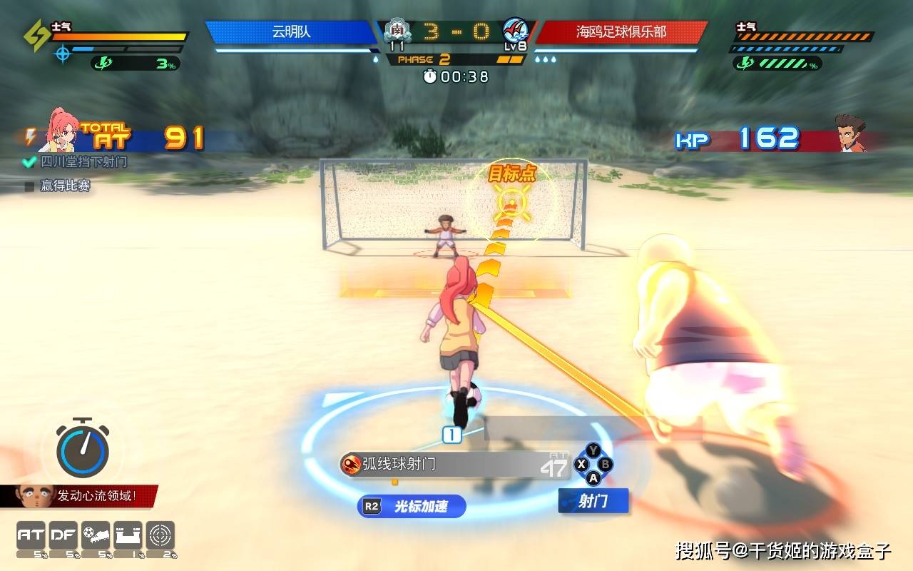 除此之外,传球等行为只需要玩家点按一个按钮即可。对于不懂足球的人来说,其实只要记得把球传给前锋,然后让前锋射门即可。在本作中,现实中的运球技巧和思路有些作用,但相对RPG数值的比大小而言,实在是显得有些微不足道。