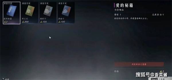 与掌柜对话,购买任务所需物品 「爱的秘籍」。