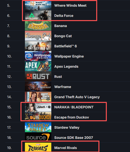 今年多款国内厂商发行的GaaS的Steam在线峰值超5万