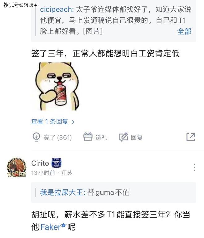 签约完成之后,就有lck的媒体爆料了Peyz的签约内幕,虽然合同期为三年,且具体的年薪未公开,但业内相关人士透露,其待遇与gumayusi选手相当,都是非常顶级的薪资。这个消息一出,所有的玩家都坐不住了,很多网友纷纷调侃,不出意外的话这应该是T1自己找的媒体。估计谁也不可能相信一个三冠王的世界赛冠军选手会和一个没参加世界赛的选手价格一样。当然,也有网友调侃打趣,是不是Peyz三年的价格和小吕布一年一样啊?