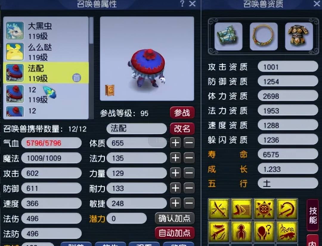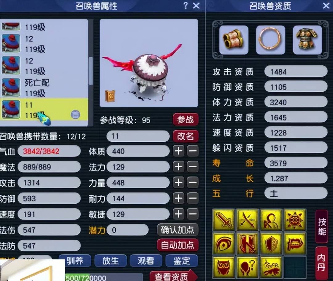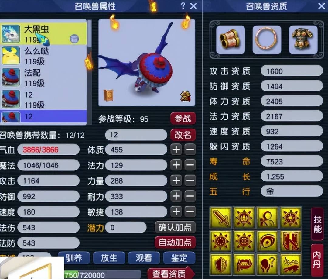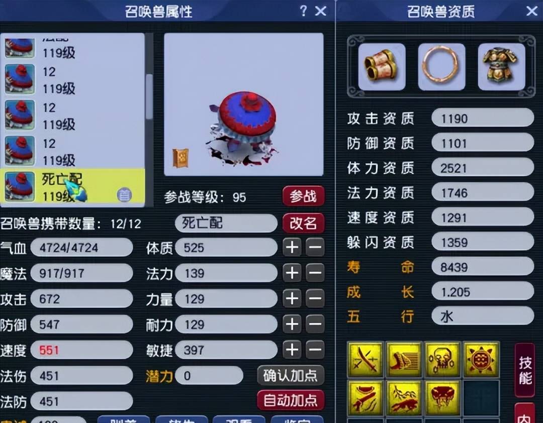第四只召唤兽为12技能吸血鬼,四吸收技能都到位,非常针对敌方的法宠。