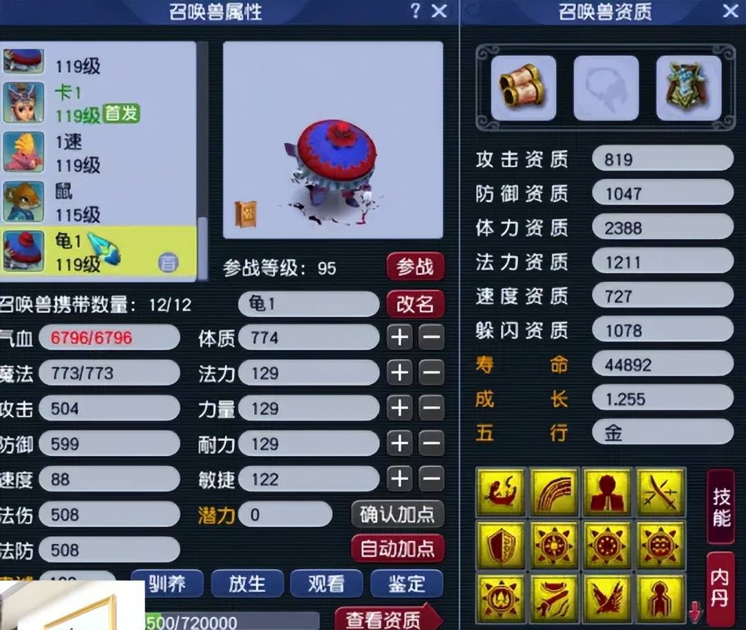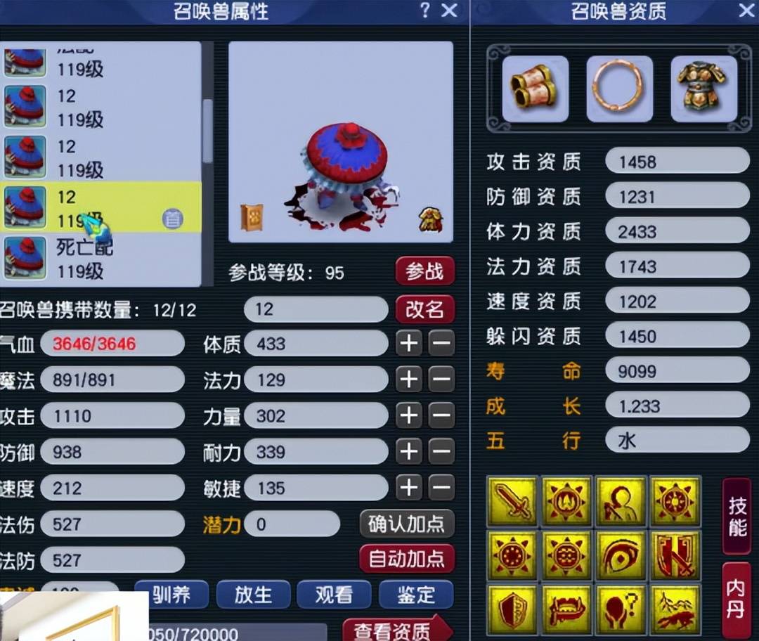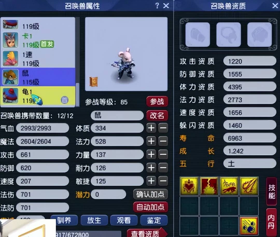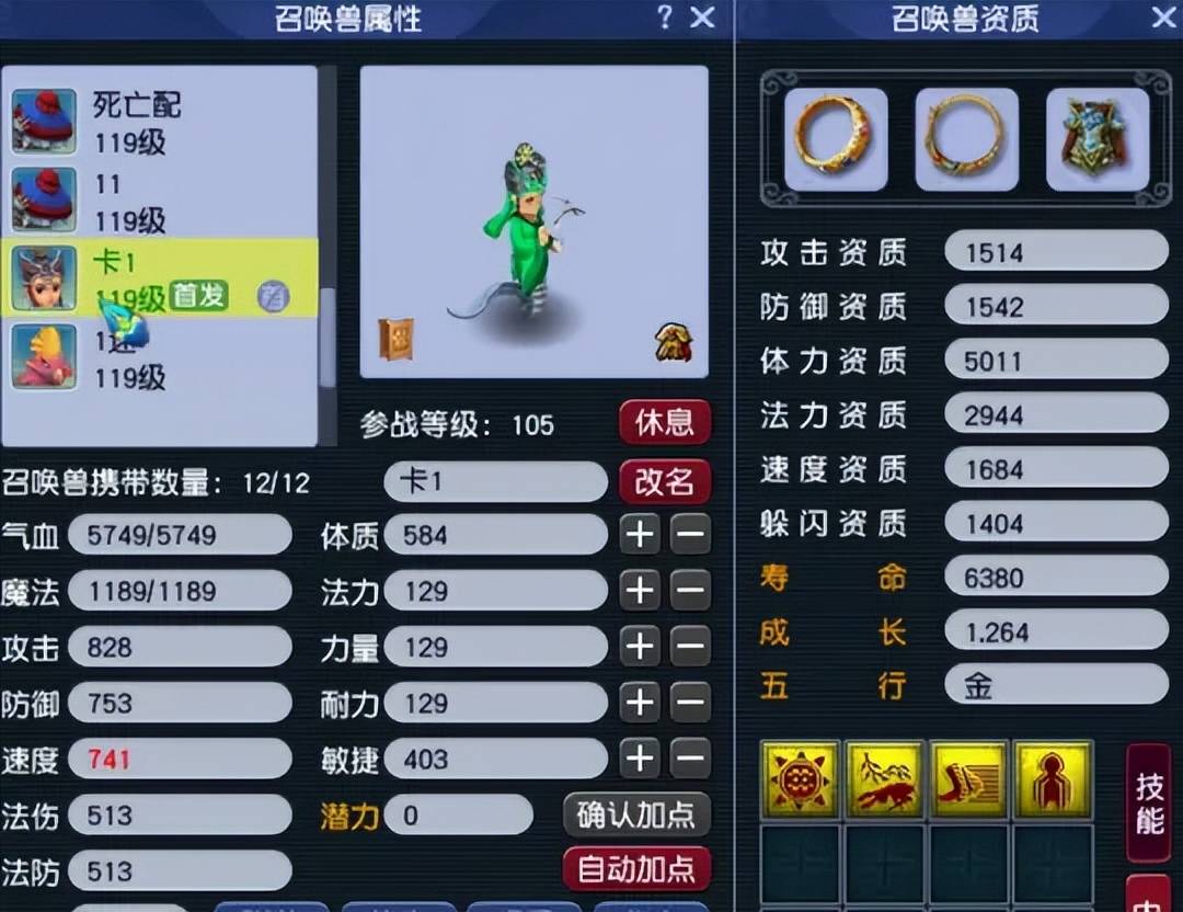 第七只召唤兽为4技能变异净瓶女娲,资质完美的高速血宠。