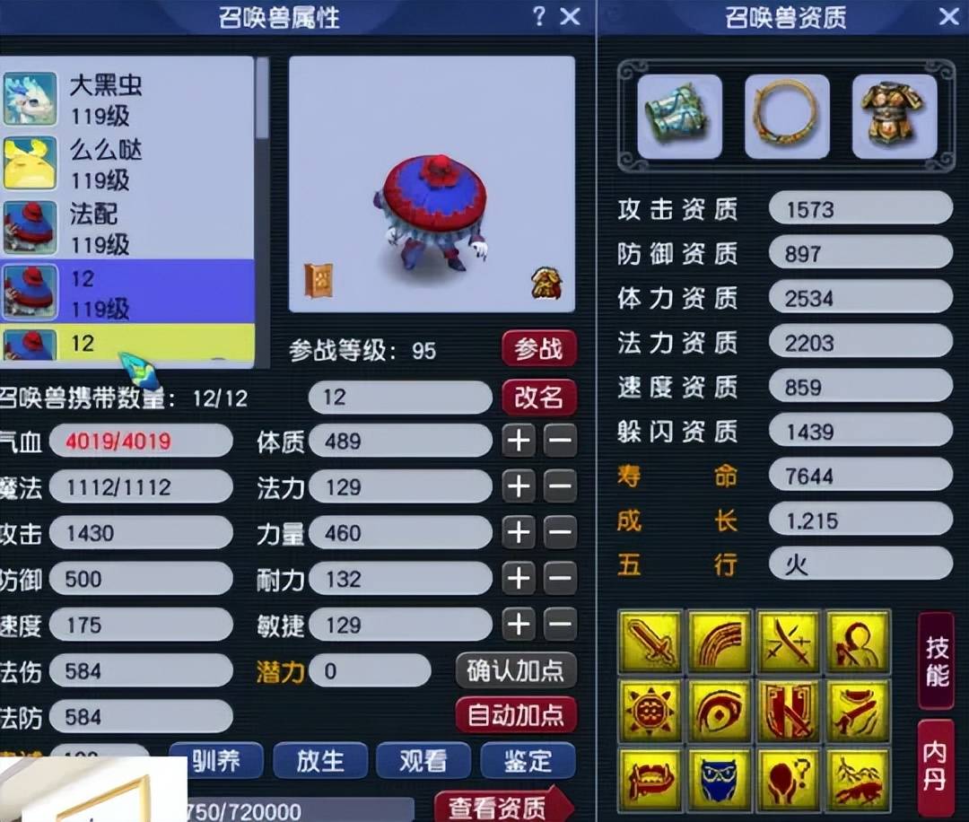 第二只召唤兽为8技能血宠,用来配合团队法系的速度。