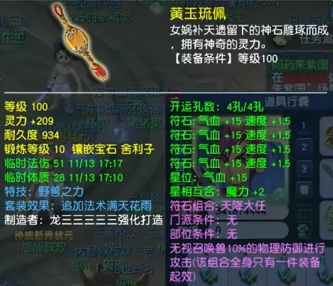 100级野兽满天项链,原始灵力149,10锻总灵209。开局给自己加个野兽,瞬间化身斩敌无数的战神。