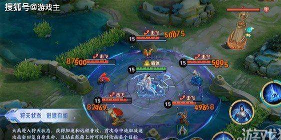 大禹进入狩天状态,获得加速和远程普攻,首次命中施加减速攻击会回复自身生命,且站在乾鼎上时可同时攻击多个目标。