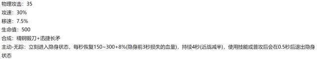 首先,幽影袖箭有35Ad+30%攻速+500生命值,不仅面板相当均衡,还可以提供7.5%的“珍贵”移速,就连价格也才2060金币。