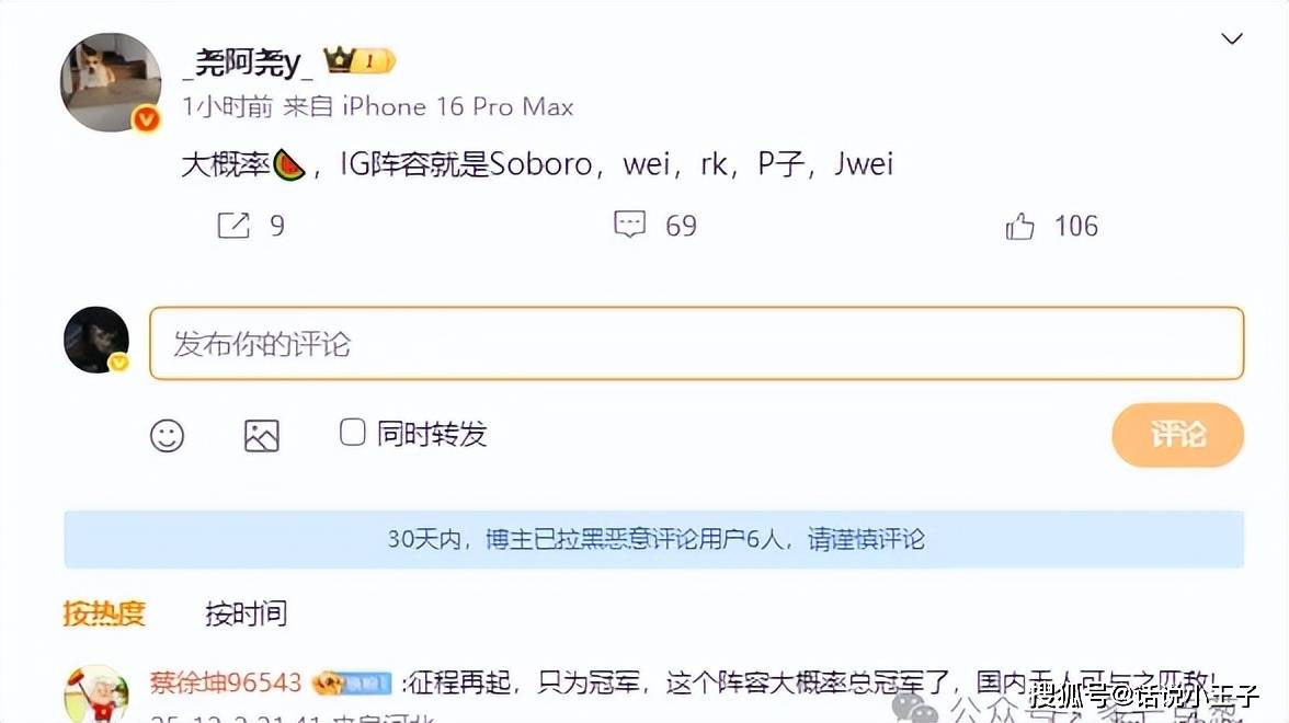 这名圈内人曝光IG新阵容是上单Soboro,打野Wei,中路Rookie,下路P子也就是Photic,辅助Jwei。这个阵容既是好事也是坏事,说是好事是因为Rookie他还接着打比赛,因为此前有消息传出Rookie第一时段会选择休息。坏事是,这个阵容完全就是向下俯冲,成为了一支垫底的队伍。尤其是上单和AD,让很多粉丝十分不满意,这两人也直接引起了哗然。