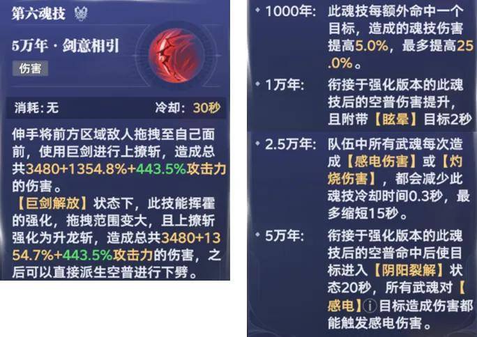 接着6魂技则是一个兼具伤害和控制的技能,不过这个魂技有一个特色便是所有武魂造成感电或灼烧伤害后都会缩短其cd,所以其玩法就是更高频的间隔释放。