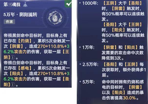 此外这个奥义还有一个最大的特点便是会在终结一击的时候消耗“王阴”和“圣阳”这两个状态,反正这俩状态嘛名字有点绕,而其积累的逻辑与方式也非常丰富,上限各分别20层,这边为大家简单总结一下其积累的途径: