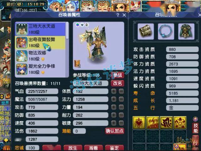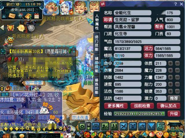 175级化生寺全力加点的面板属性,在拥有2684伤害的同时,还有1586的法伤,攻法双修。