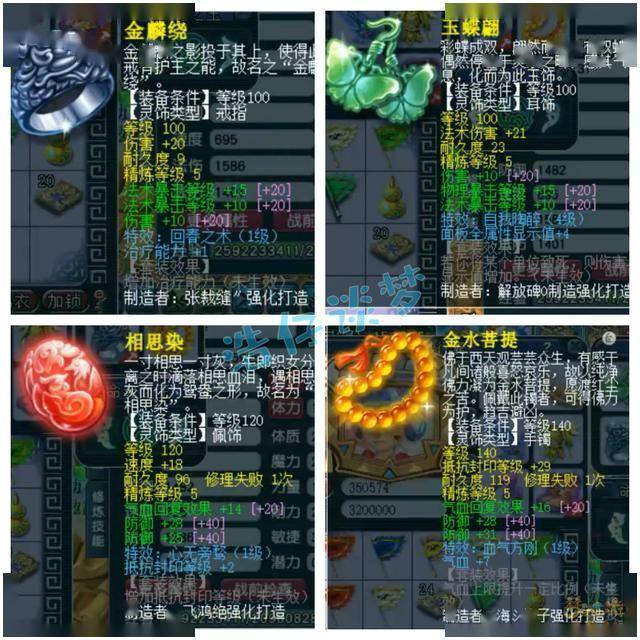 戒指下排双法暴一伤害,耳饰下排伤害物暴法暴,配饰和手镯下排都是双防御一气血回复,全部打了5锻星辉石。