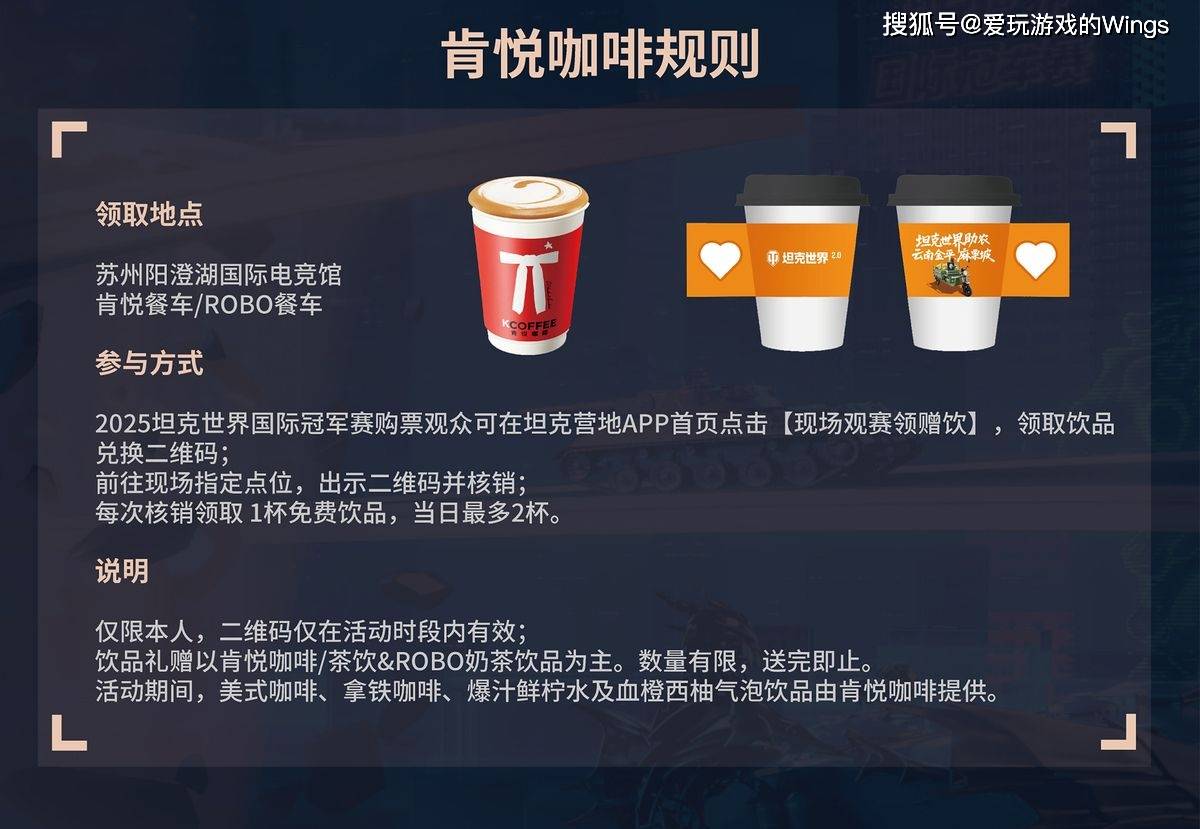 看坦克大战,补充能量也是很重要的一环,这次提供赞助的商家是肯悦咖啡和ROBO奶茶,大家可以到官方的坦克营地APP上领取消费券兑换。