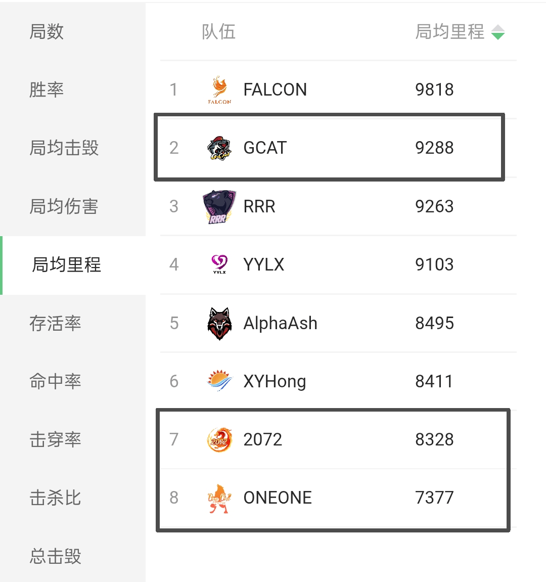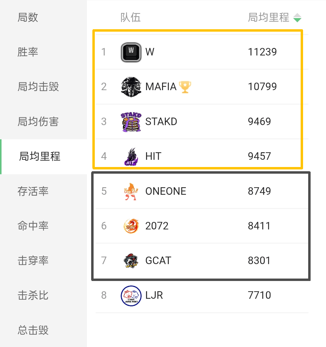 除此之外,国服三支战队另一个被吐槽的点就是战术呆板,不如欧服队伍灵活,这一点在局均里程上也有所表现。