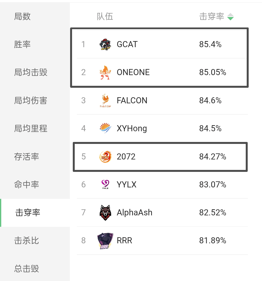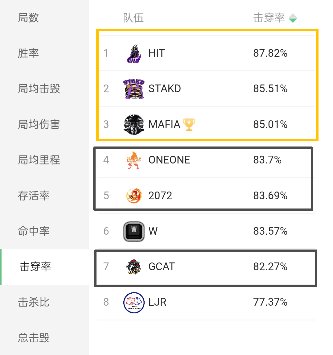 纵观比赛表现,有许多观众都在吐槽国服战队基本功不行,击穿率不如外服。如果只看WCI上的数据,这一点确实成立。最夸张的H&R做到了87.82%的超高击穿率,冠军MAFIA则是85%。而国服最好的ONEONE也就83.7%,GCAT只有82.27%。