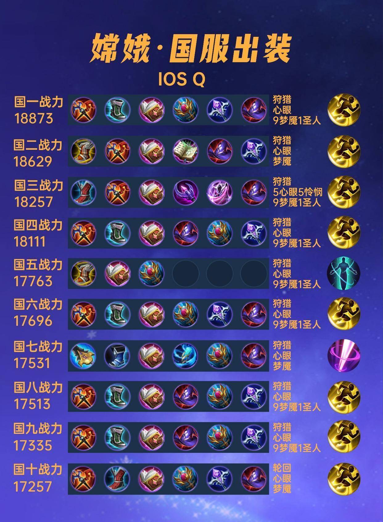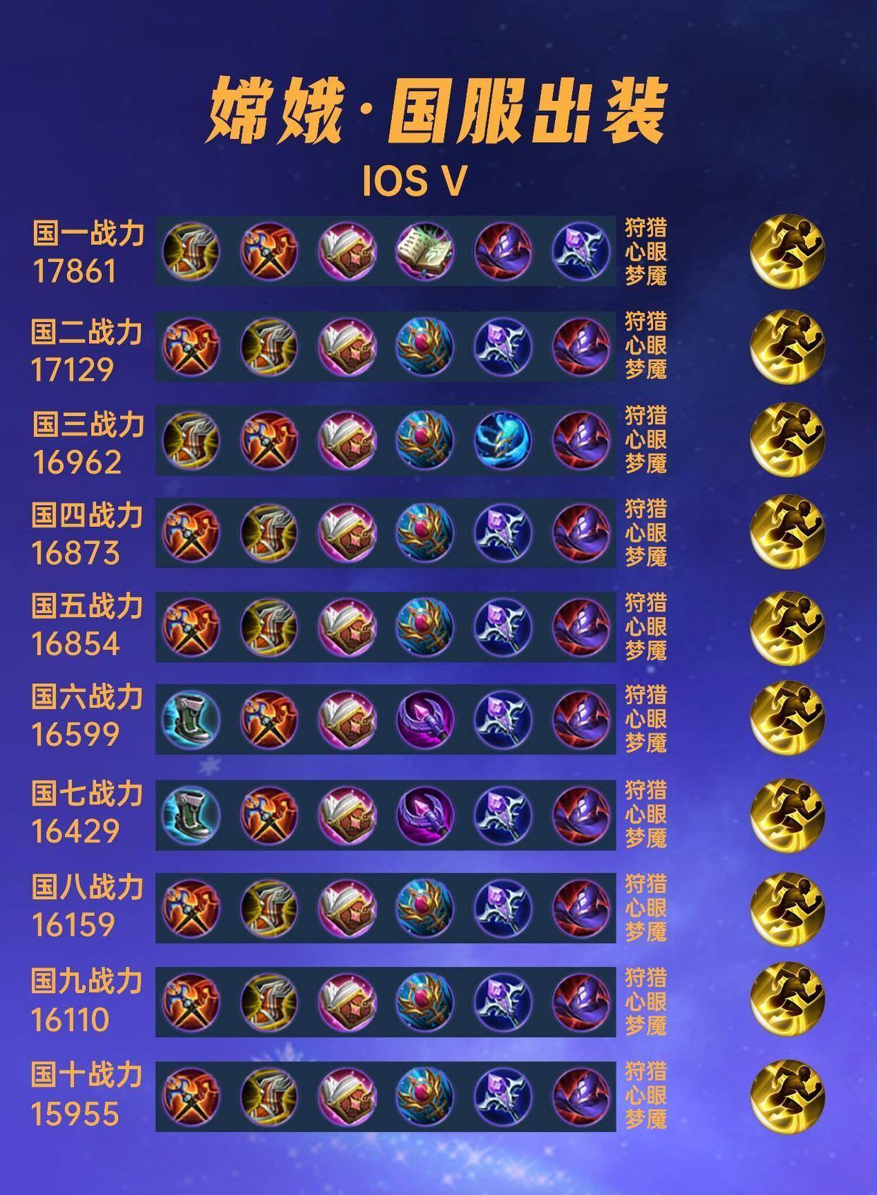 这一篇文章我们来看一下40位国服嫦娥的出装铭文汇总。