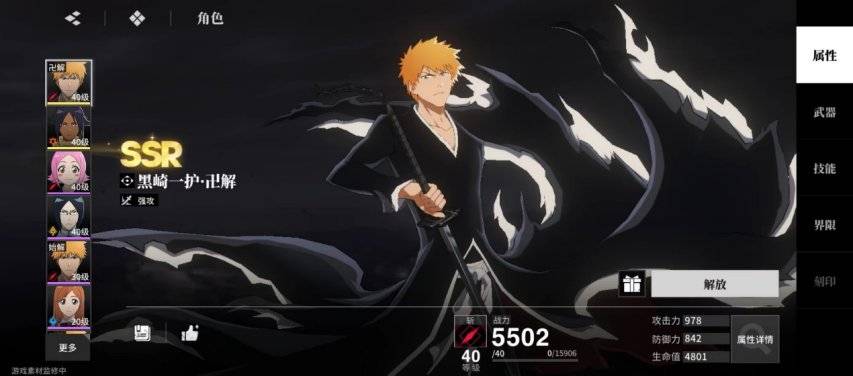 这种设计让游戏的战斗体验不再是简单的数值碾压,而是回归到动作游戏最纯粹的技巧和策略比拼。同时,游戏在画面表现上也下足了功夫,角色的卍解动画和招式特效都达到了相当高的水准,极大程度地还原了原作中气势磅礴的灵压释放场景。