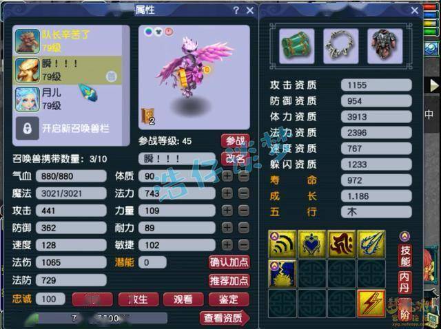 5技能蓝书全力月影仙,攻资养出了加号,成长也很不错,赐福了两个技能。