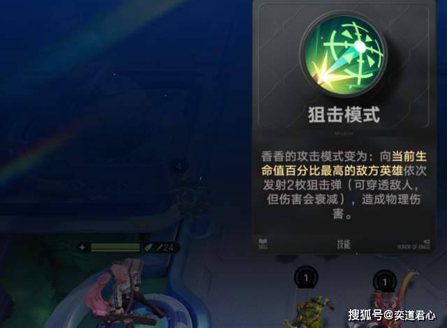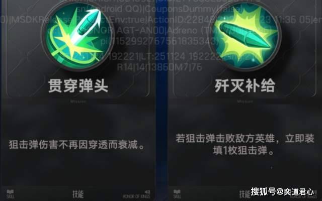 效果:向当前生命值百分比最高的敌方英雄一次发射2枚狙击弹,可穿透敌人,但伤害会衰减。