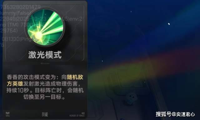 效果:向随机敌方英雄发射激光造成物理伤害,持续10秒。目标阵亡时,会随机切换至另一目标。