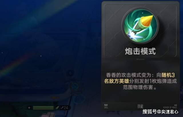 效果:向随机3名敌方英雄分别发射1枚炮弹造成范围物理伤害。