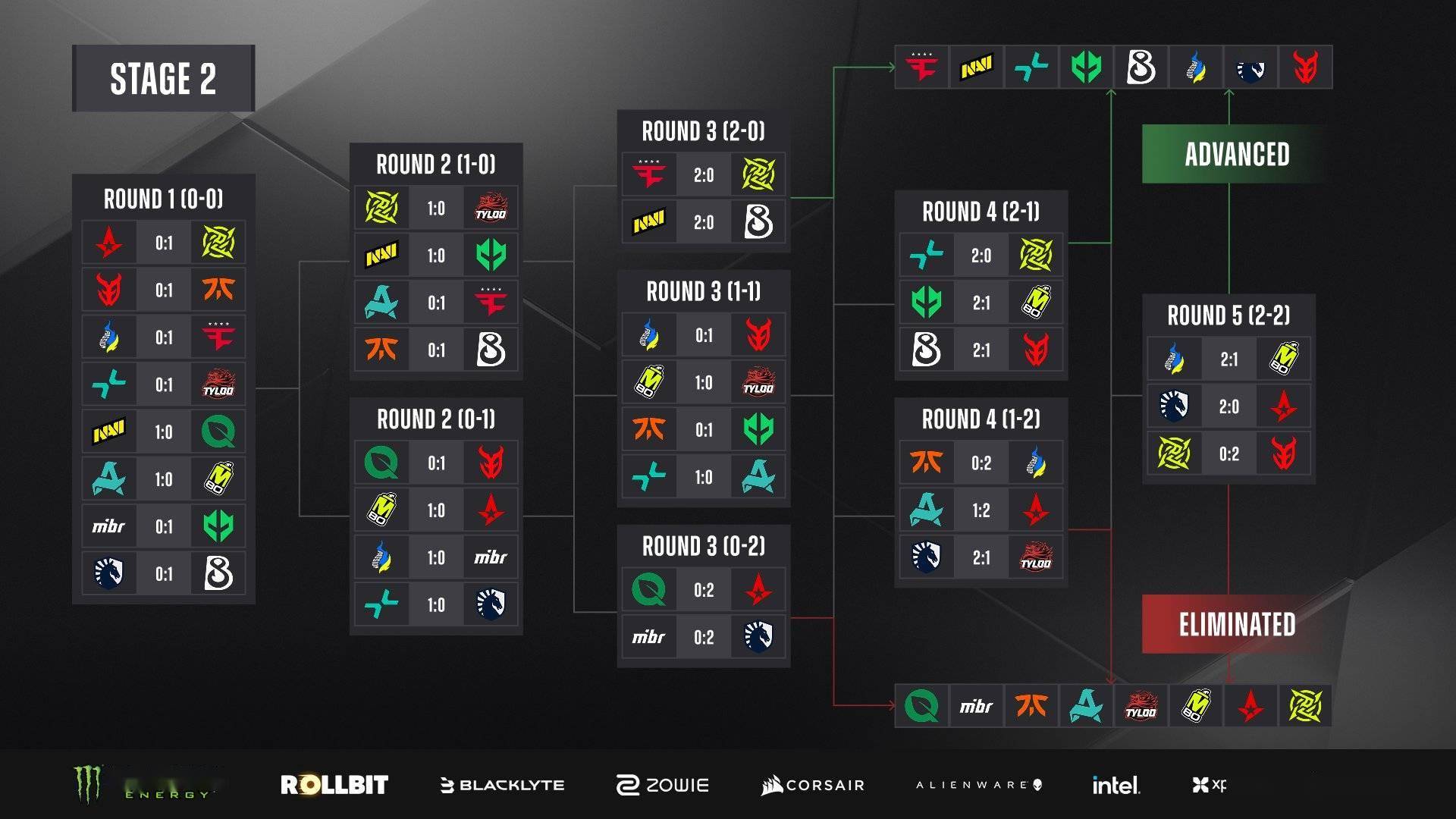 第二阶段的其它晋级者还包括 Faze、NAVI、 PARIVISION、Imperial、B8,这些队伍将在第三阶段面对直邀的 FURIA、Vitality、Falcons、The MongolZ、MOUZ、Spirit、G2、paiN。
