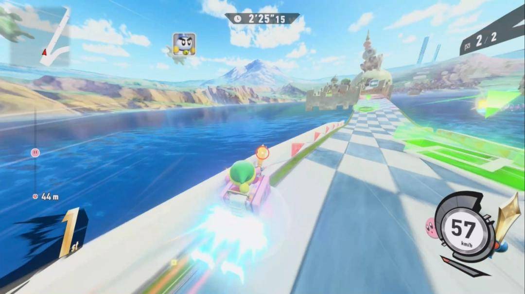 相比之下,《卡比的驭天飞行者》中竞速模式的完成度,就要高得多了。它完整保留并复刻了前作的全部九条赛道,并按照当代派对竞速模式应有的标准……甚至是在同类中极为优秀的标准,设计了九条全新的赛道。
