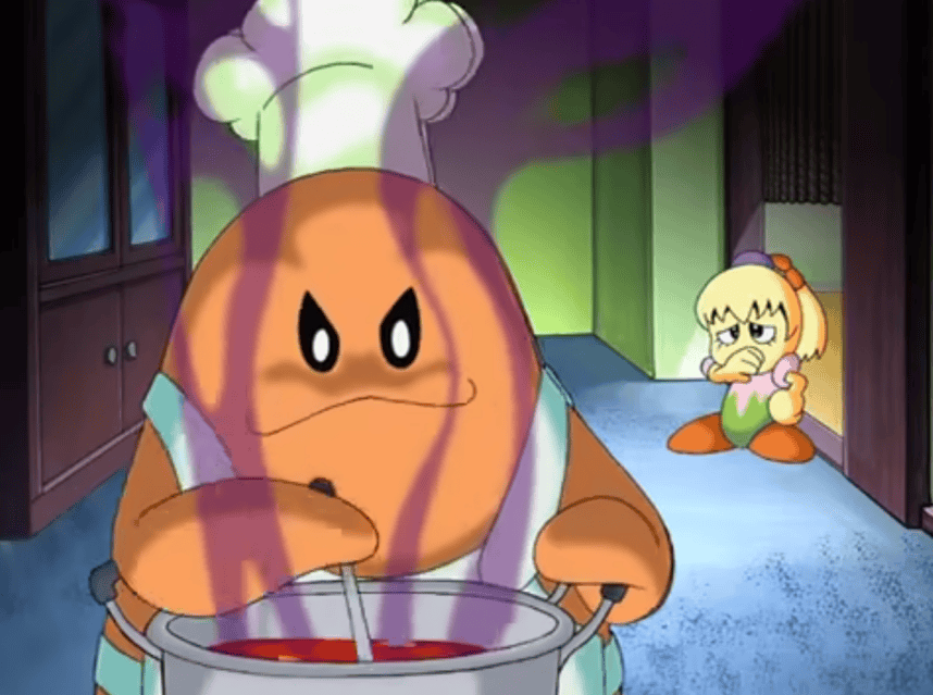 这些特性和必杀,不仅有不俗的功能性和趣味性,其中蕴含的“卡比”系列梗,更是能让老玩家们会心一笑。例如系列搞笑担当,蹩脚伙夫川崎大厨的必杀技,就是疯狂扔出爆辣咖喱,把对手当场辣死——这显然是致敬其在《星之卡比》动画中,他为了赶潮流揽客而做出杀人级超辣咖喱的桥段。