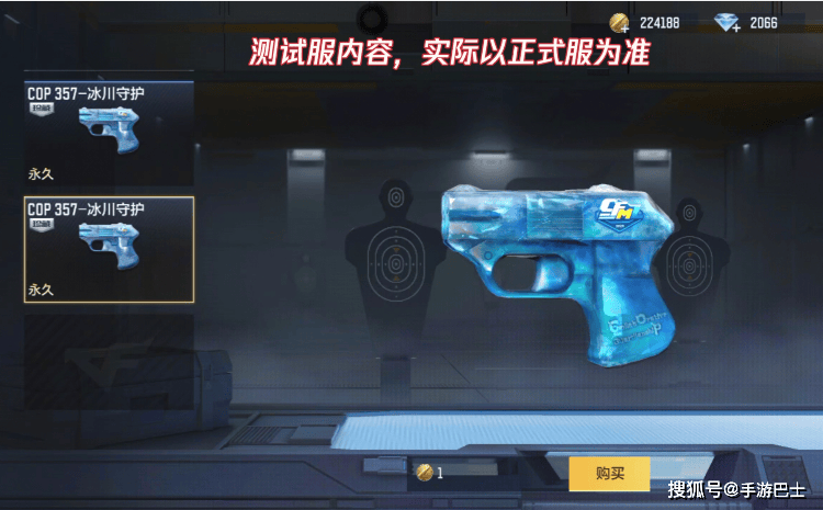 再来看实战中这款COP 357-冰川守护的表现。装备皮肤后,原本暗淡无光的COP瞬间被冰蓝色冰川包裹,整把枪械呈现出近乎透明的冰川质感,看上去非常纯净。