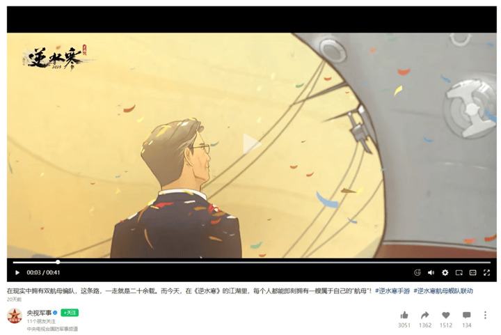 《逆水寒》的许多举措已深入游戏之外的广阔领域。于内,有涵盖国防科普(中国航母)、乡村帮扶(路灯、“一块屏”)、教育支持(免费午餐、“神农计划”)的多维度公益联动;于外,则获得了包括央视军媒在内的官方表扬,并与安塞腰鼓等非遗开展了文化合作。