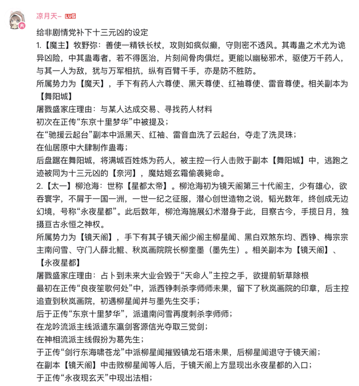 在《十三元凶:生死弈》PV发布后,大量玩家自发解析剧情、推测未来走向,形成良好的社区互动氛围。有玩家甚至详细梳理了已登场的十三元凶及其设定,为其他玩家提供参考。