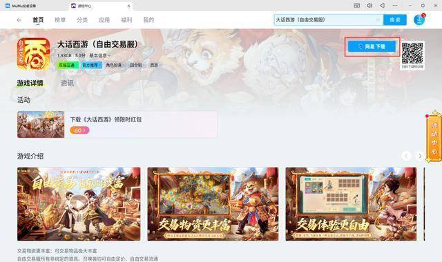 方法一:打开游戏中心或直接在搜索框搜索大话西游,点击下载;
