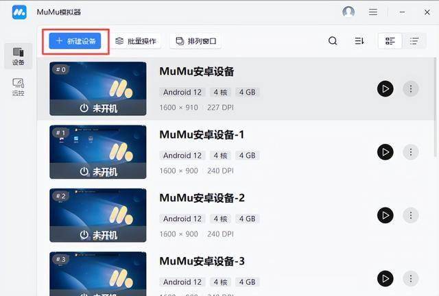 MuMu模拟器支持多开设备,助力用户同时运行多个设备,由此实现同时运行多个游戏/应用!